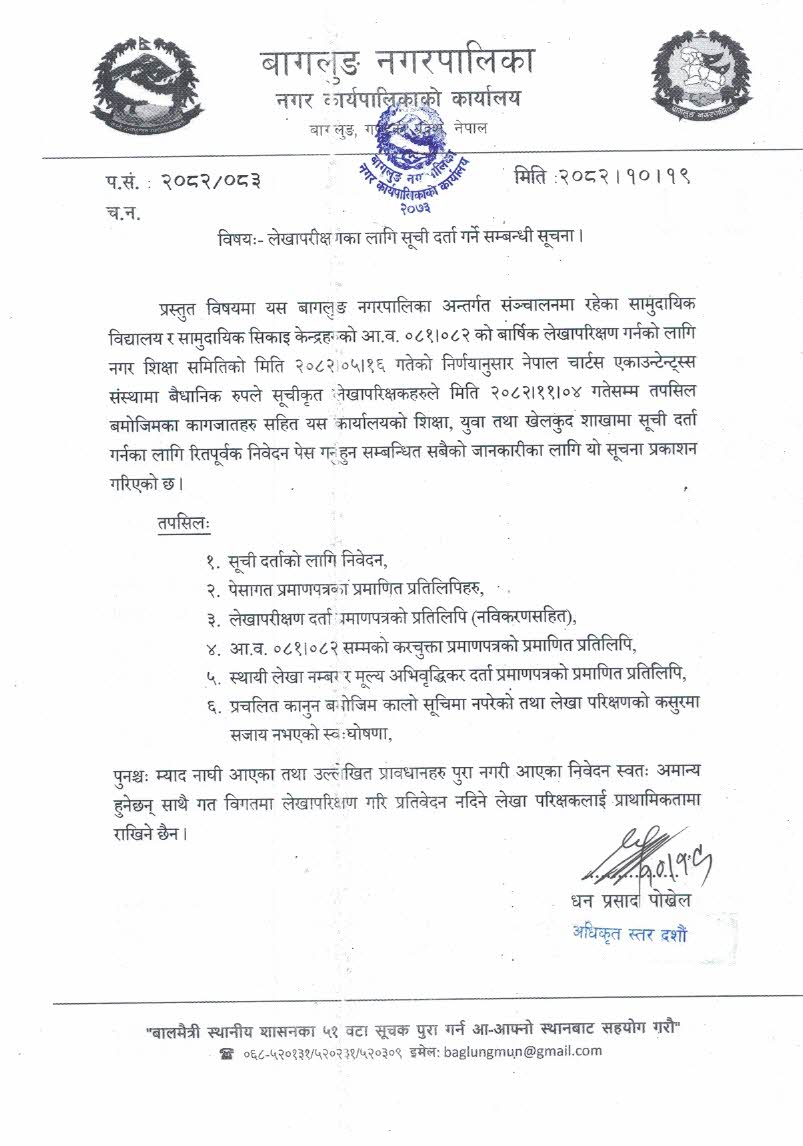 » लेखा परिक्षणका लागि सूची दर्ता गर्ने सम्बन्धी सूचना !!!