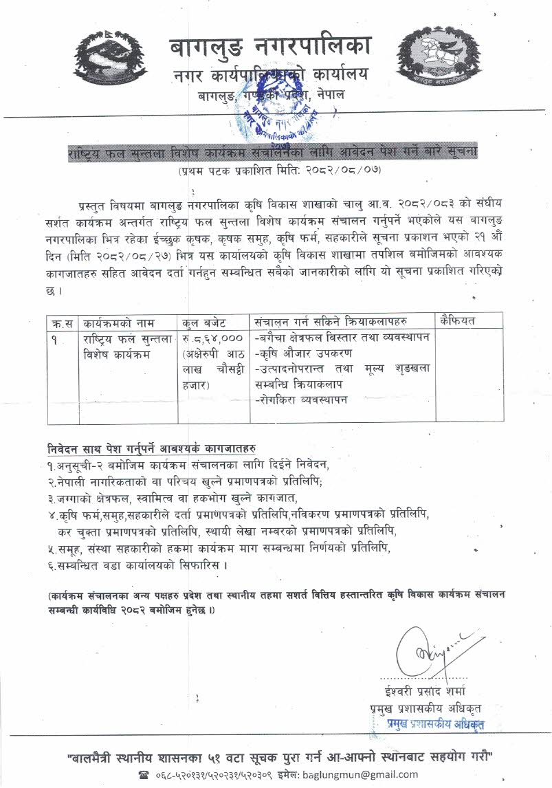 बागलुङ नगरपालिकाको निति तथा कार्यक्रम २०८०/०८१