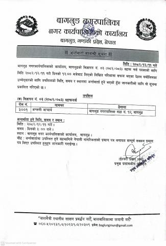 बाेलपत्र स्वीकृत गर्ने आशयको सूचना !!!
