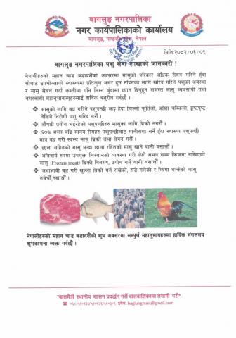 बागलुङ नगरपालिका पशु सेवा शाखाको जानकारी !!!