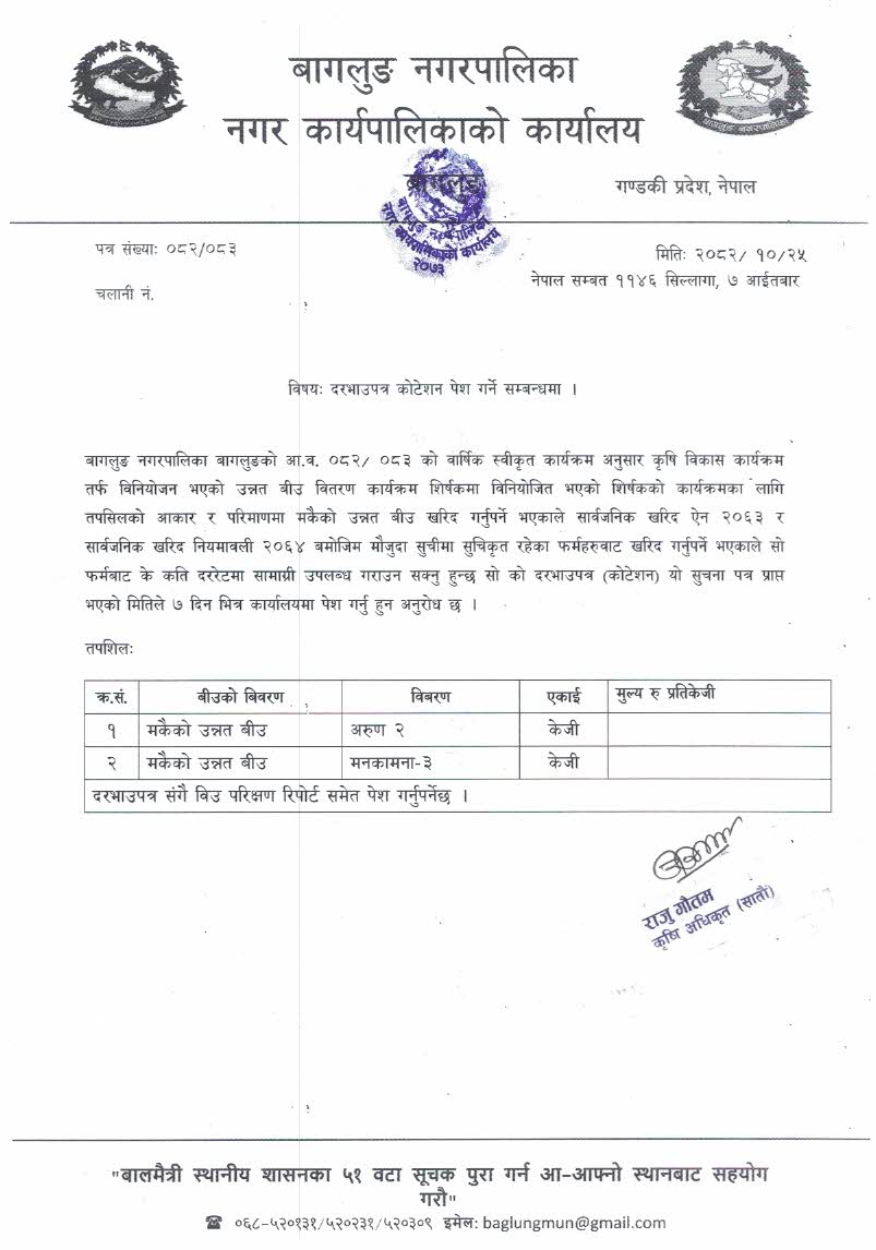 ५० प्रतिशत अनुदानमा मकैको वीउ माग गर्ने सम्बन्धी सूचना !!!