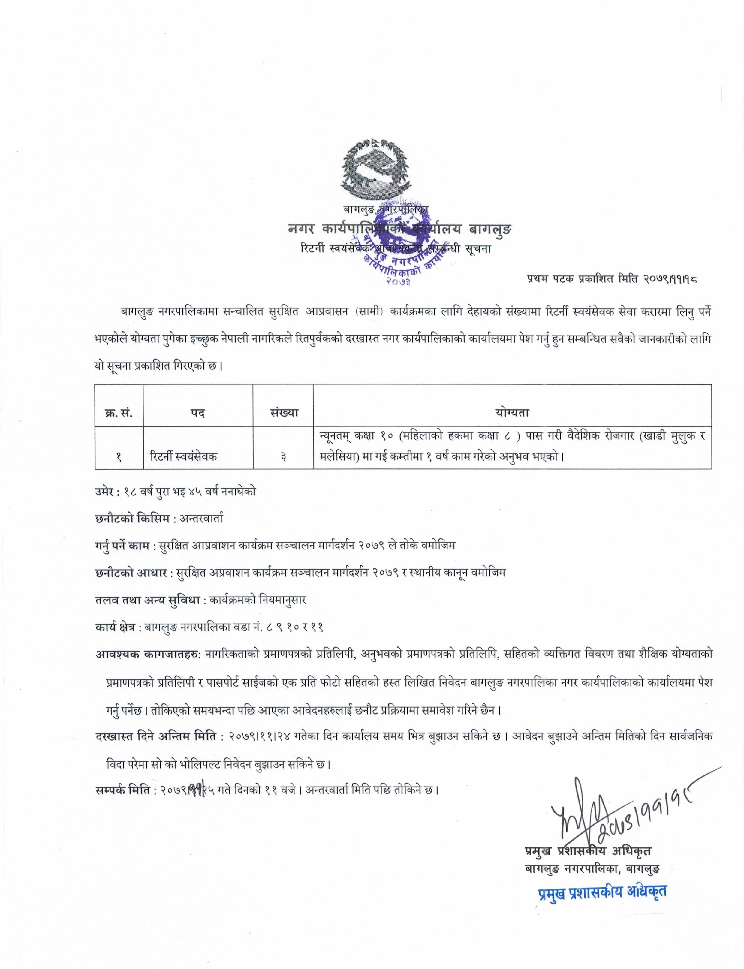 रिटर्नी स्वयंसेवक करारमा लिने सम्बन्धी सूचना !!!