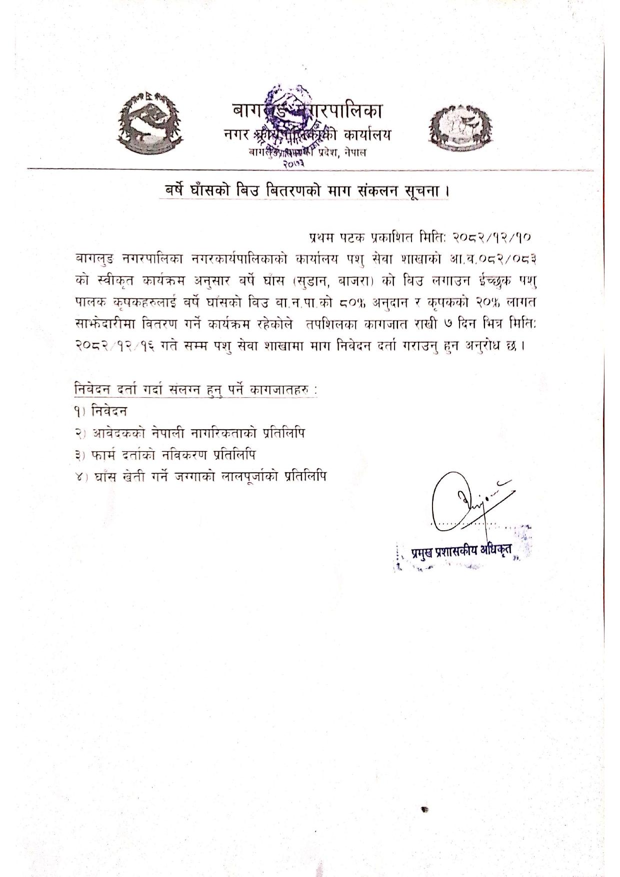 » वर्षे घाँसको बिउ वितरणको माग संकलन सूचना !!!