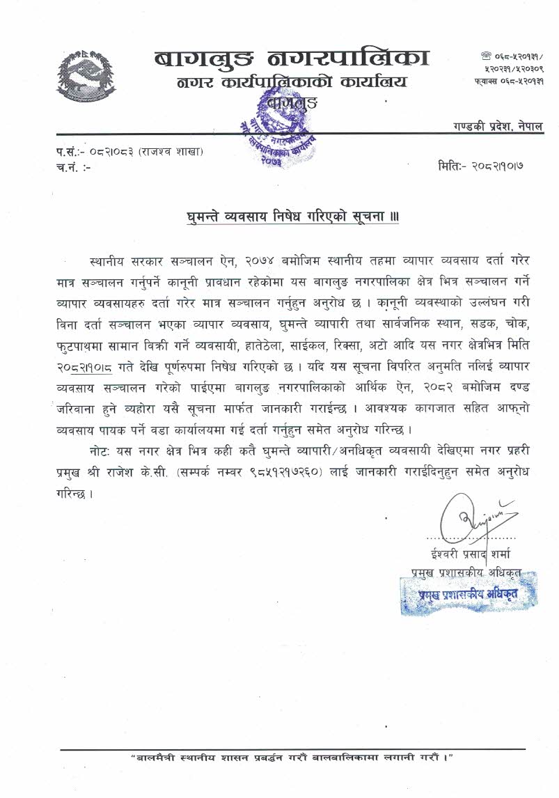 » घुमन्ते व्यवसाय निषेध गरिएको सूचना !!!
