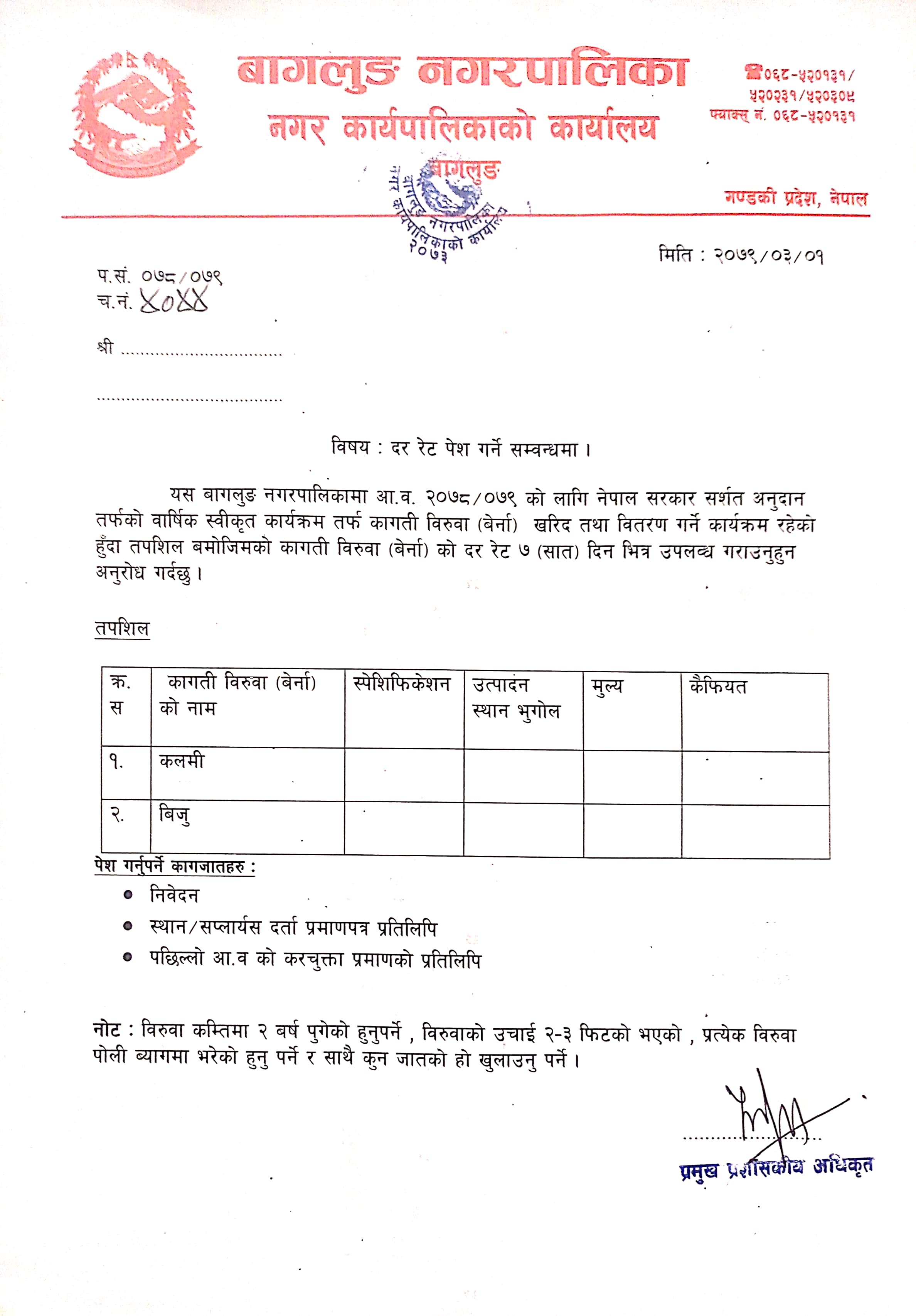 बागलुङ नगरपालिकाको निति तथा कार्यक्रम २०८०/०८१