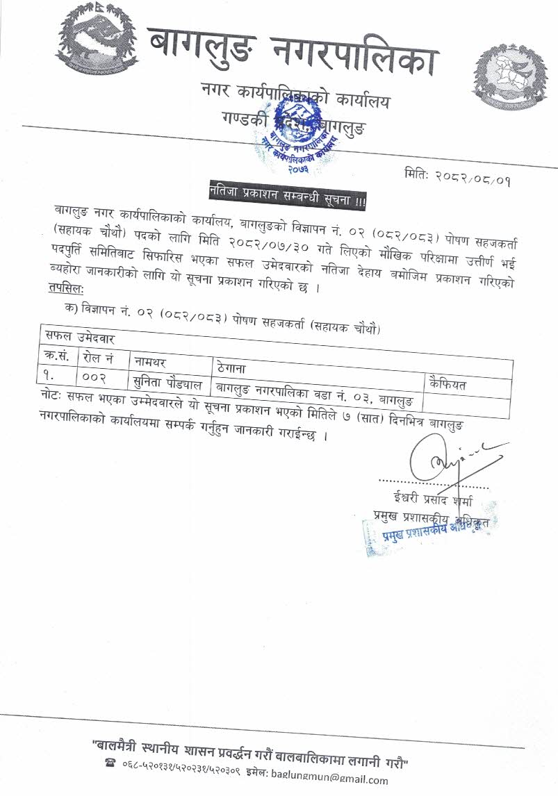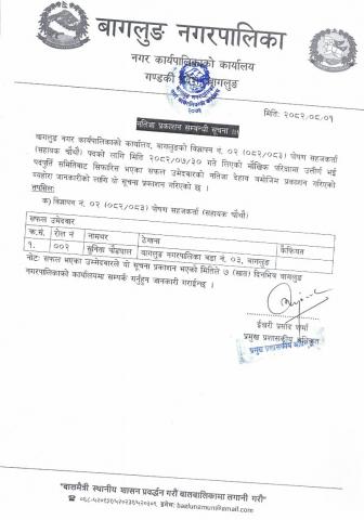 बोलपत्र स्वीकृत गर्ने आशयको सूचना !!!