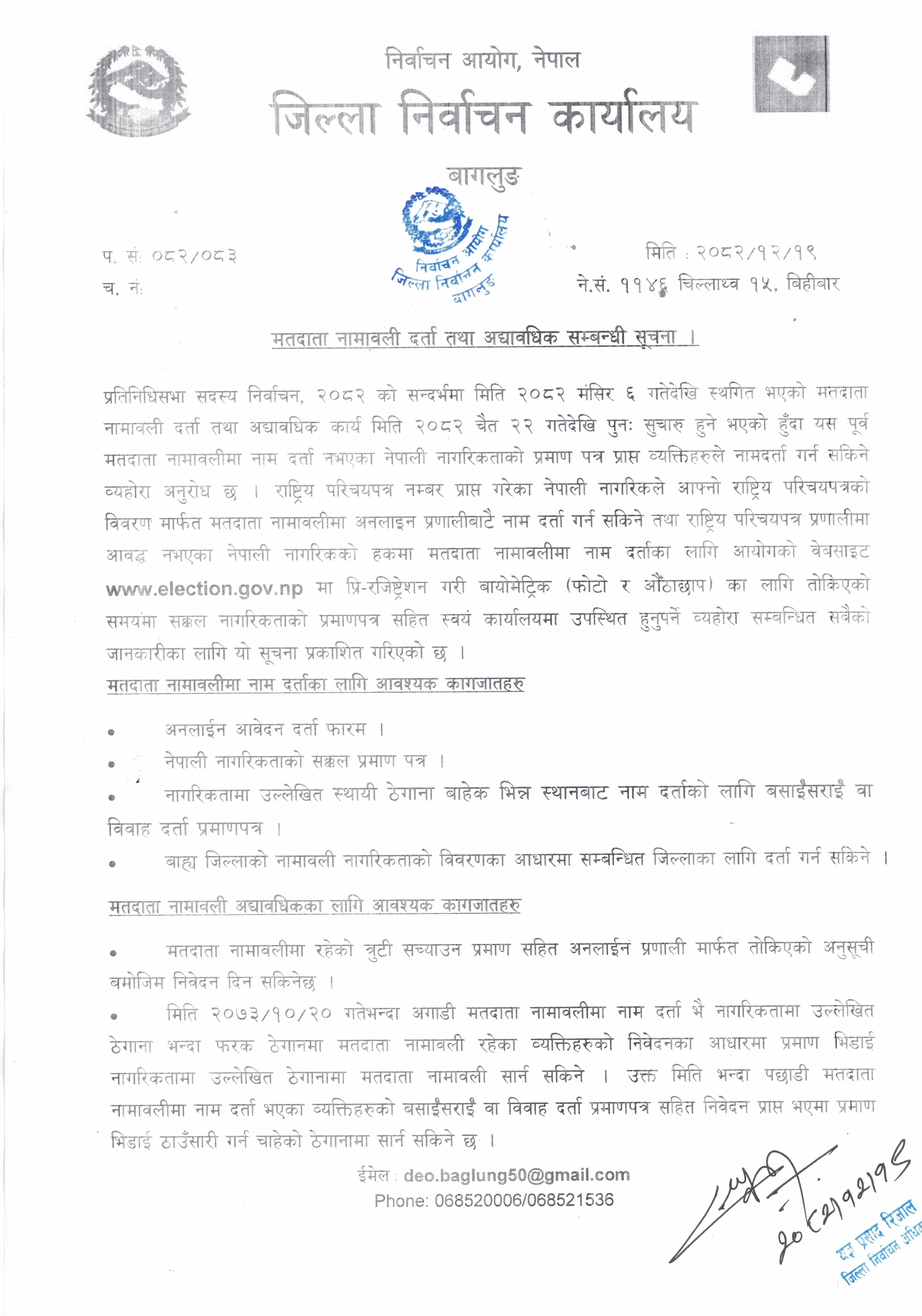 मतदाता नामावली दर्ता तथा अद्यावधिक सम्बन्धी सूचना पठाईएको !!!