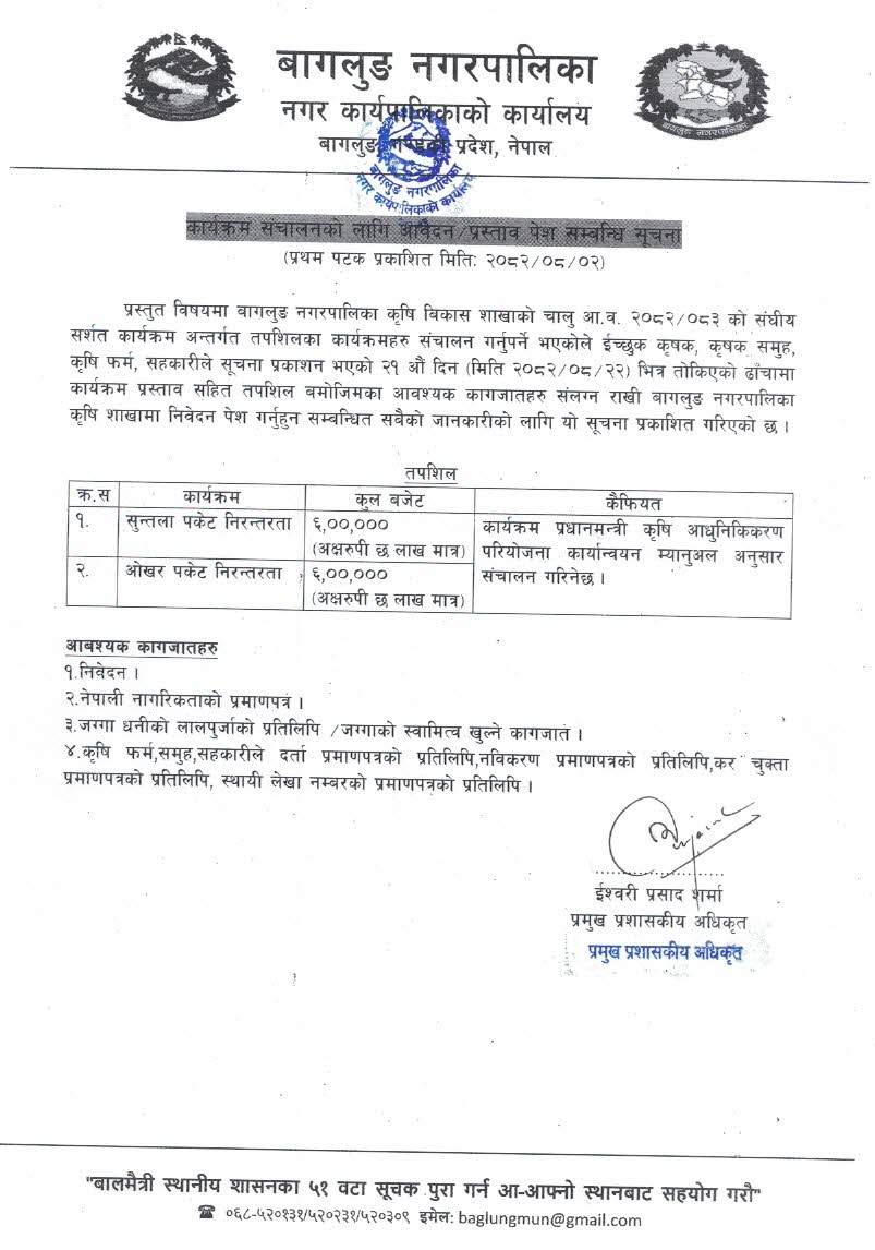 बागलुङ नगरपालिकाको निति तथा कार्यक्रम २०८०/०८१